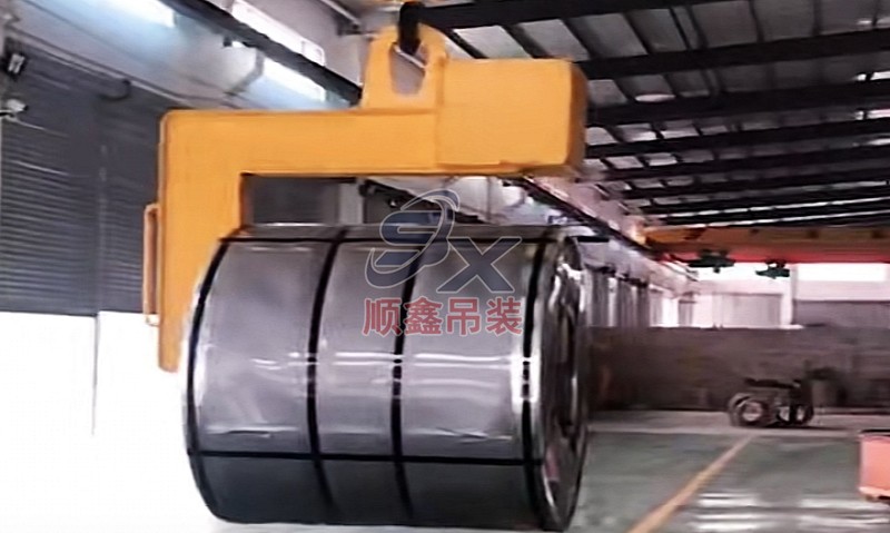 翻轉(zhuǎn)吊具通過機械剪力原理,對立式擺放的卷鋼進(jìn)行單邊抓取,來完成卷鋼的裝卸,當(dāng)改變重力點時,可以對卷鋼進(jìn)行翻轉(zhuǎn),作業(yè)時不傷鋼卷。其吊耳采用加厚處理,焊縫飽滿牢固、延長使用壽命。